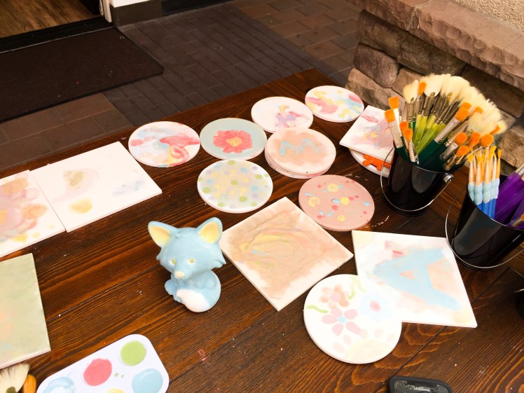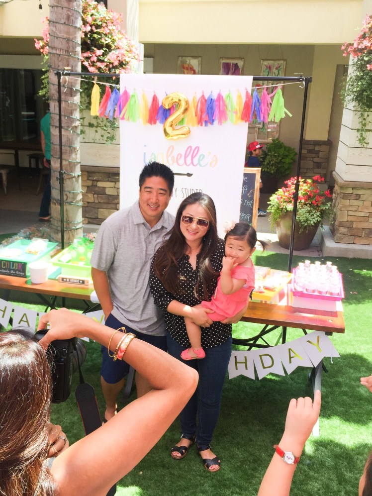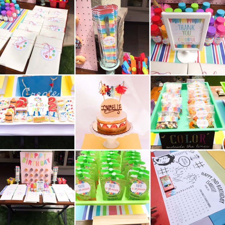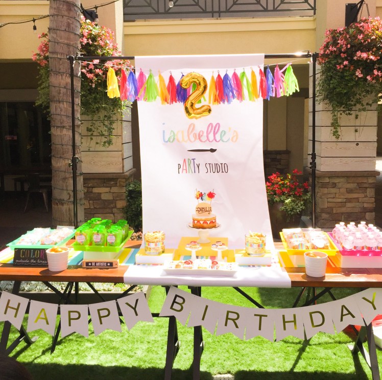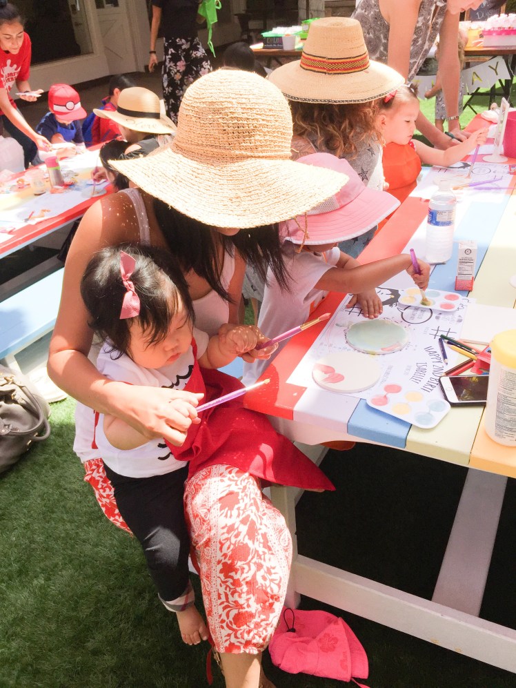 Cute little Isabelle turned 2 not to long ago! The party was held at a ceramic paint studio called A Colorful Universe at the flower hill promenade in Del Mar! So it was perfect to have a paint party theme! Her parents spared no expense and went all out to make the kids and adults thoroughly entertained and fed. They ordered food from Flower Child and had custom coloring sheets, cupcake palette decorating, tile painting, and so much more! Kids had a blast!
