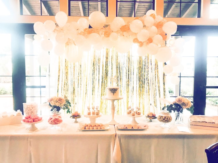 My good friend Caroline’s bridal party was a roaring success, held on the Saturday following New Year’s Day. The theme was the stylish and sophisticated roaring 20s, complete with a feminine touch of white, gold, pink, and feathers. We went all out with a beautiful balloon garland, tinsel curtains, and glitter everywhere, creating an ambiance of glitz and glamour. The room was alive with laughter and chatter, and the sparkling tinsel added to the festive atmosphere. The guests received personalized Champagne bottles labeled as “Caroline’s Bubble” as gifts, and there was no shortage of sweets and desserts to indulge in. To add to the fun, we set up a donut ring wall and a headband-making station for everyone to enjoy, complete with a sign inviting everyone to “put on your feathers, Doll Face.” As the prohibition had ended, there was an abundance of drinks to go around. For a closer look at all the exciting details, please see below.